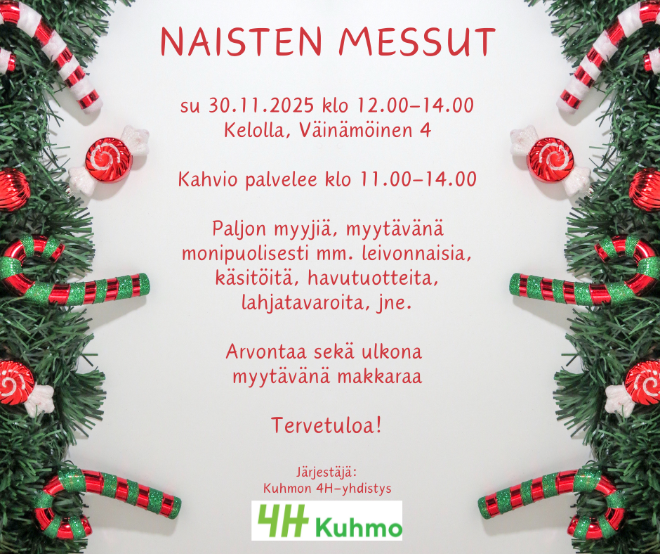 Naisten messut 30.11 klo. 12-14 Kuhmon Kelolla